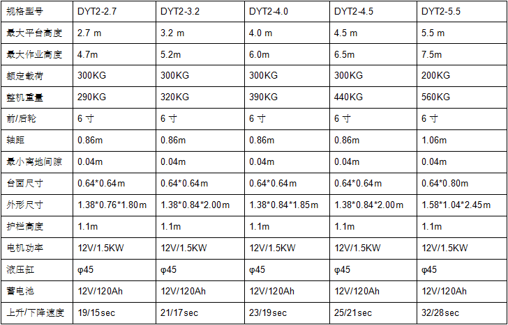 • 平臺高度:可選2.7m、3.2m、4.0m、4.5m、5.5m
