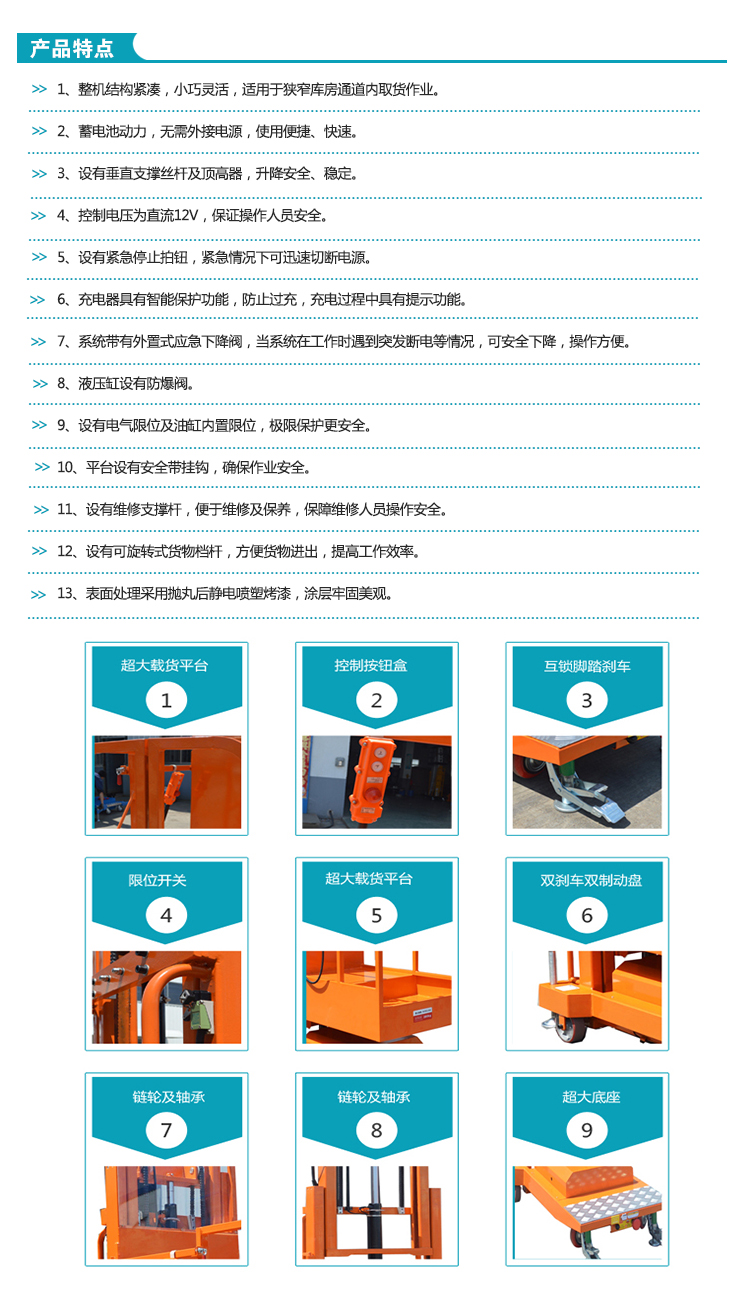 • 產(chǎn)品特點(diǎn):體積小、自重輕、移動靈活,可通過狹小門洞或電梯,能在極小空間發(fā)揮最大作用。可代替?zhèn)鹘y(tǒng)梯子或腳手架,提高工作效率,保障操作人員安全,是高空作業(yè)的必備工具。